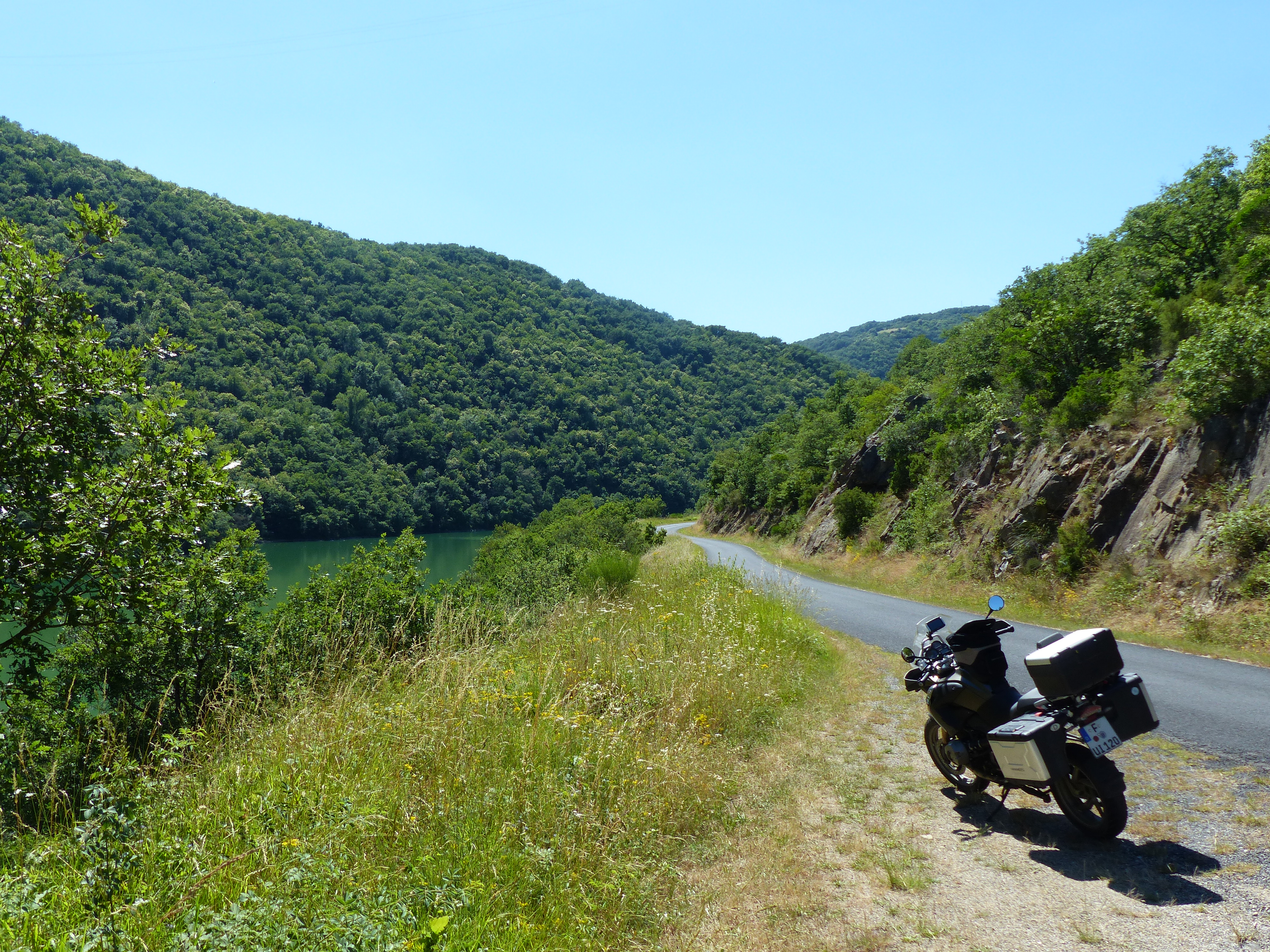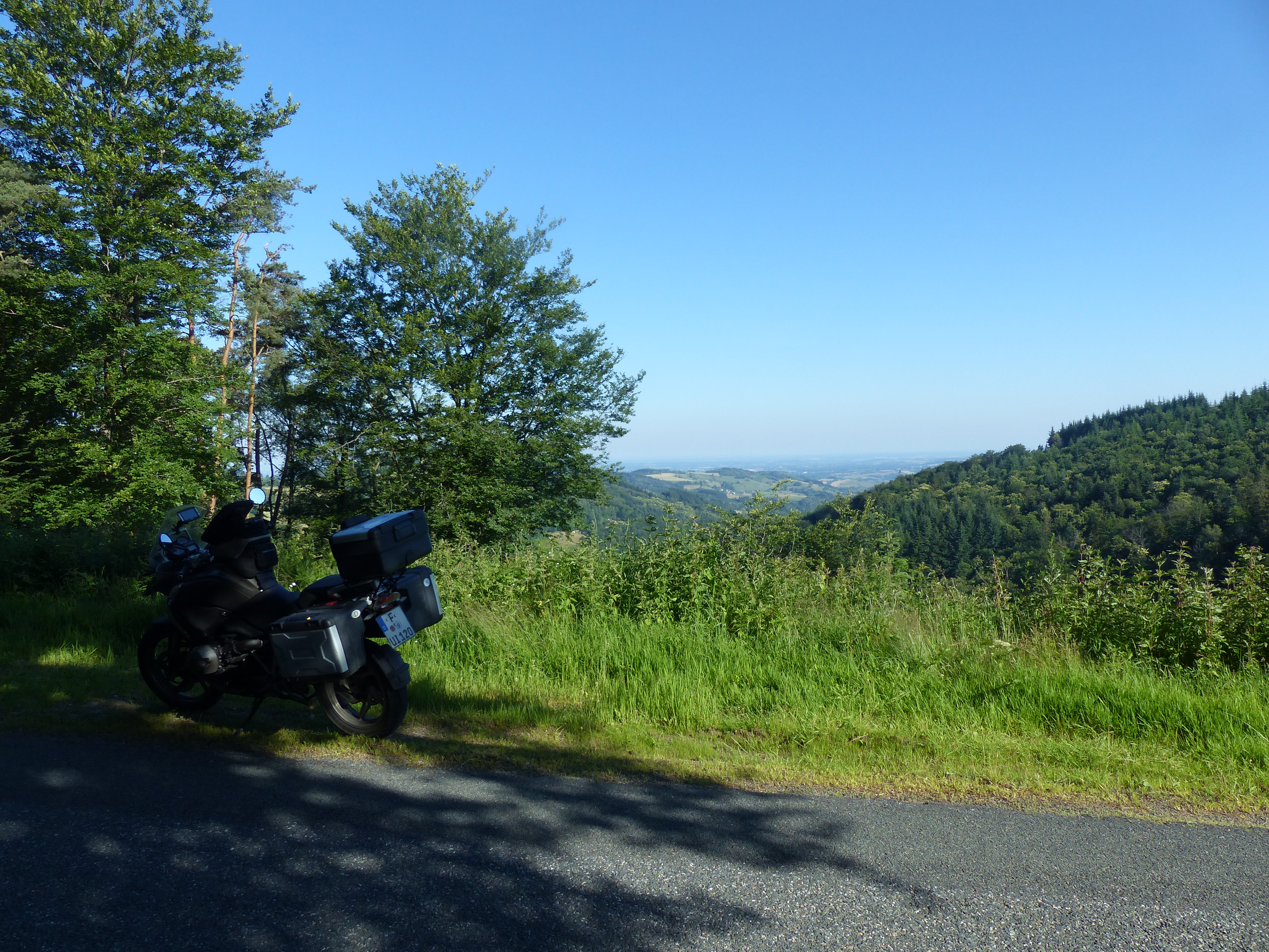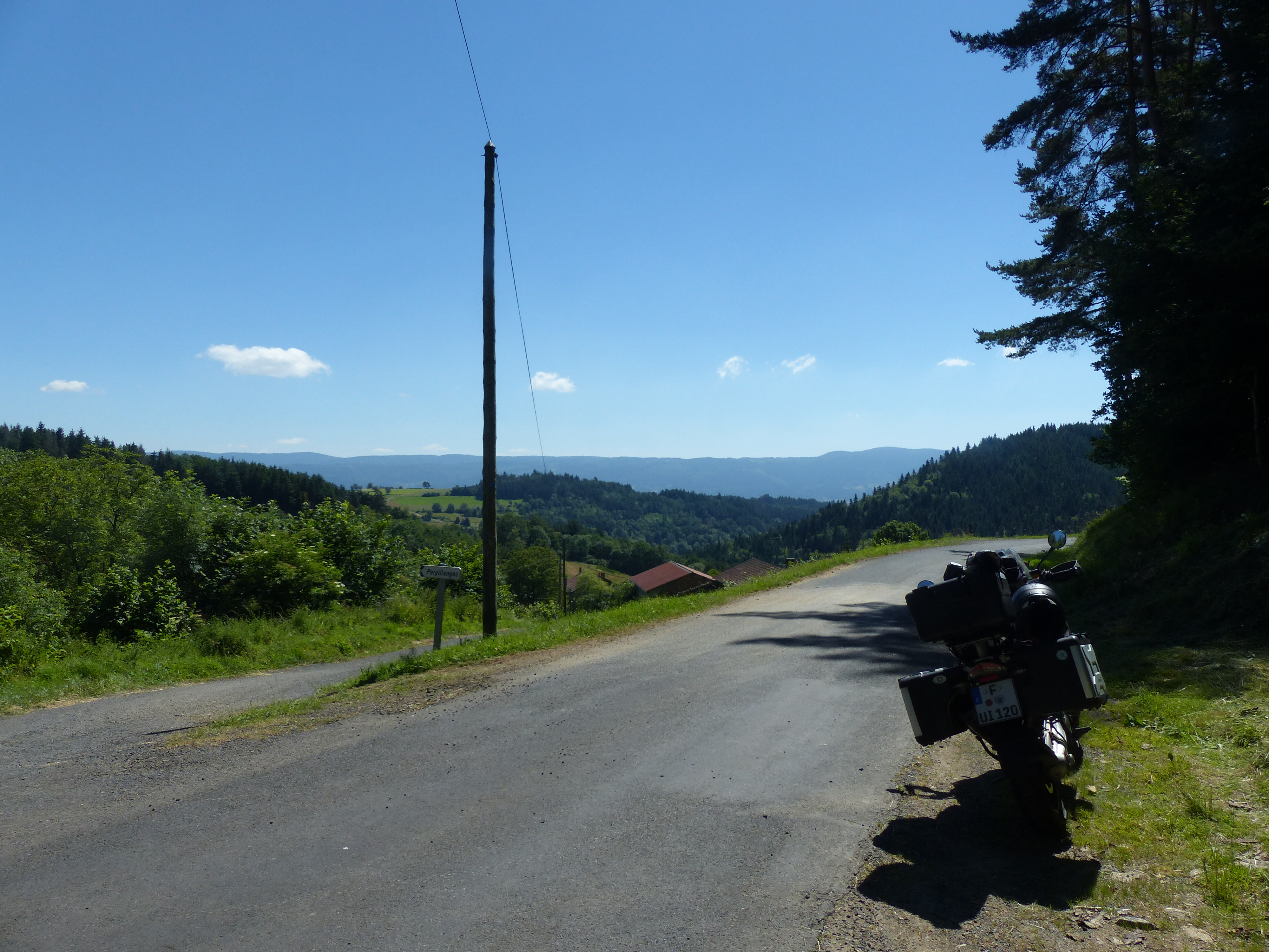 Quer durch Frankreich geht es weiter. Ich habe zuvor bei der Unterkunft ein für Frankreich außergewöhnlich gutes Frühstück bekommen. Das liegt vermutlich daran, dass die Besitzerin Niederländerin ist, da gehört dann eben auch mal Käse auf den Tisch. Tolle Kurven und Straßen, leider auch wieder viel mit Splitt – ich verstehe die Franzosen nicht was das soll – das ist so gefährlich. Ich bin gefühlt alle Bergstrecken des französichen Zentralmassivs abgefahren. Leider ist es dabei auch nicht wirklich warm geworden. Zu Anfang der Fahrt hatte ich, vermutlich auch auf Grund der Kälte, Probleme mit meiner linken Schulter. Nachdem ich ein paar Lockerungsübungen gemacht habe, hat sich das gegeben. Erst kurz vor dem Ziel wurde die 20°C Marke erreicht.