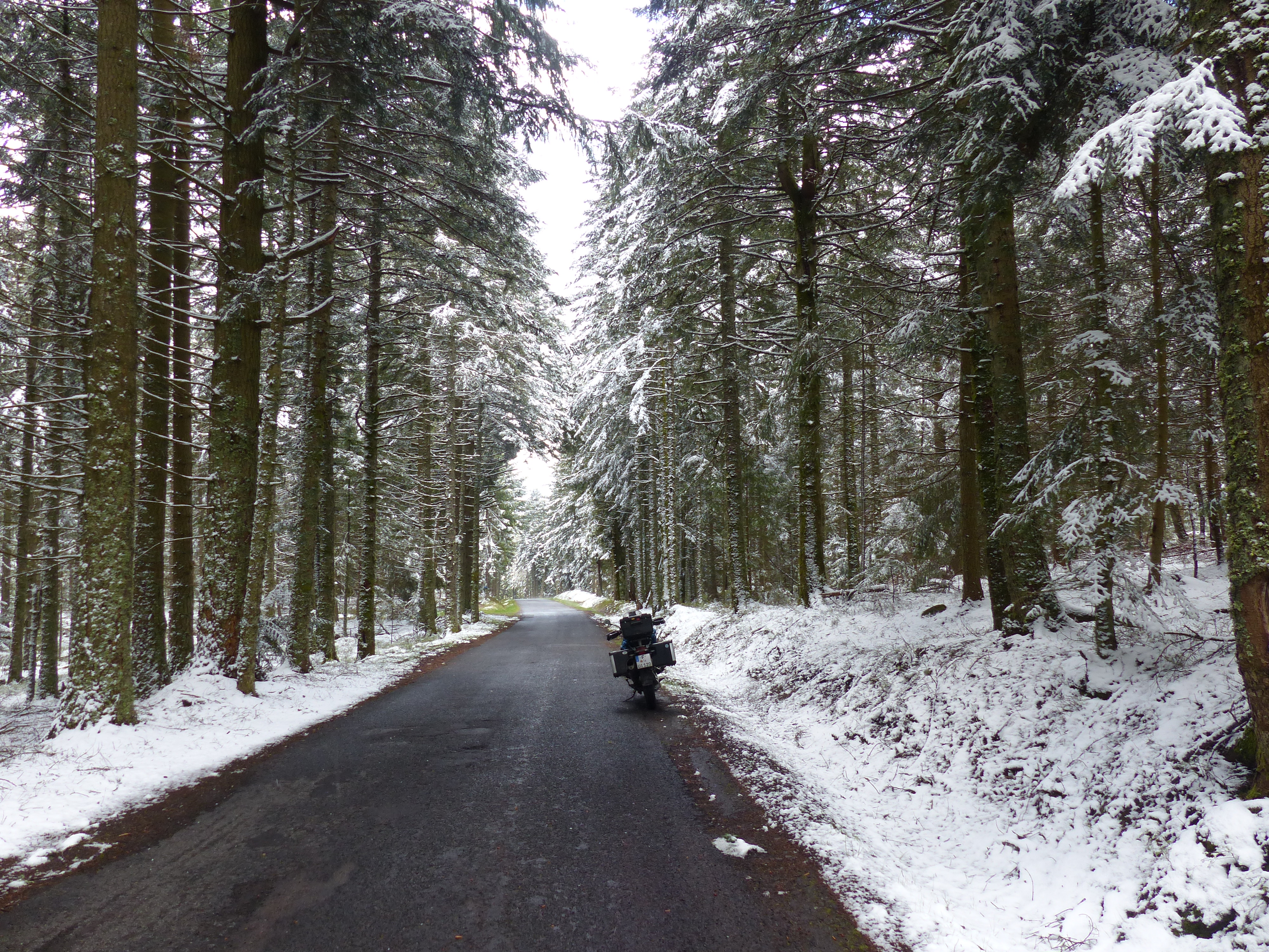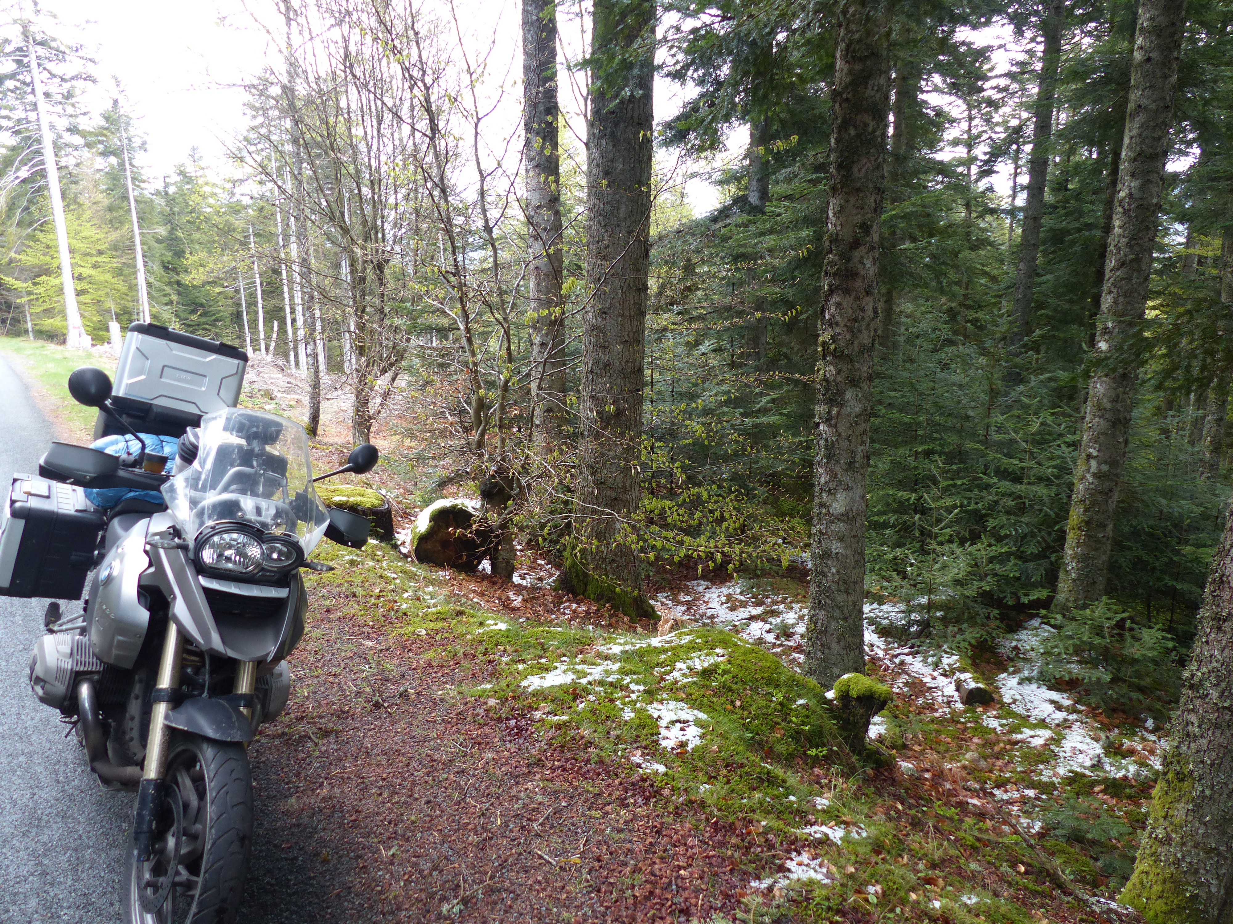circa 1.000m Höhe gab es auch Schnee zu sehen. Zunächt waren nur einige Flecken weiß und dort wo die Sonne hinschien dampfte es. Nachdem es einige 100m weiter hoch ging, erwartete mich nun eine Schneelandschaft, aber auch leider Temperaturen von 2°C bis 3°C. Dies hielt aber zum Glück nicht an.
