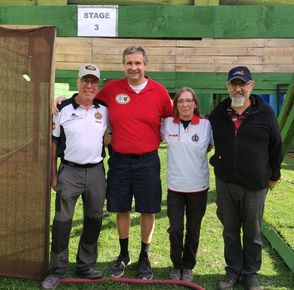 Der Tag begann wieder mit einem gemeinsamen Frühstück um 8 Uhr. Meine Co-ROin Norma hat mir direkt gesagt, dass sie gerne die Ergebnisse mit dem Tablet aufnehmen möchte. In der Vergangenheit hatte sie wohl mehrfach Pech mit unsicheren Schützen. Mir kam das sehr entgegen. Unsere Patch-Gehilfin fiel allerdings aus und so hatten wir die Ehre, dass der Range Master Alejandro als Patch-Hilfe bei uns auf der Stage gearbeitet („patchear“) hat. Die Stage selber war optimal: Ein Shorty und die einzige Stage beim Hauptgebäude im Obergeschoß. Im Untergeschoß hat es ordentlich gezogen, aber bei uns war es recht schön, wobei das Wetter für Teneriffa weiterhin vergleichsweise schlecht war. Es gab mehrfach kleine Regenschauer – allerdings ist das alles wieder recht schnell getrocknet.
