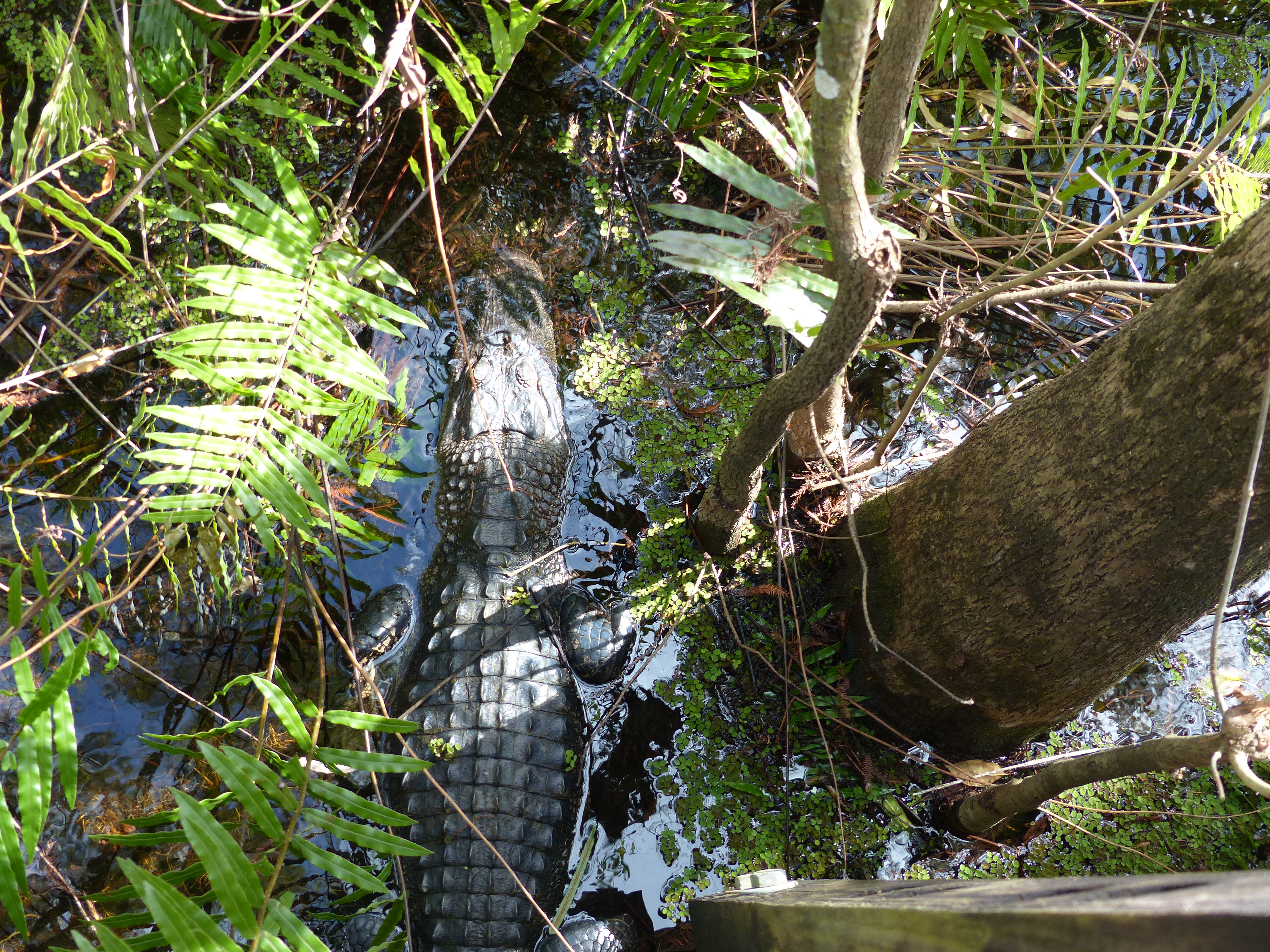 Wir haben uns für den Morgen die Six Mile Cypress Slough Preserve vorgenommen. Dieses durch Freiwillige betriebene Schutzgebiet mit ursprünglichen Mangrovenwäldern ist einen Besuch wert, auch wenn man Glück haben muss um Tiere zu sehen. Wir haben jedenfalls unseren ersten Alligator aus der Nähe betrachten können