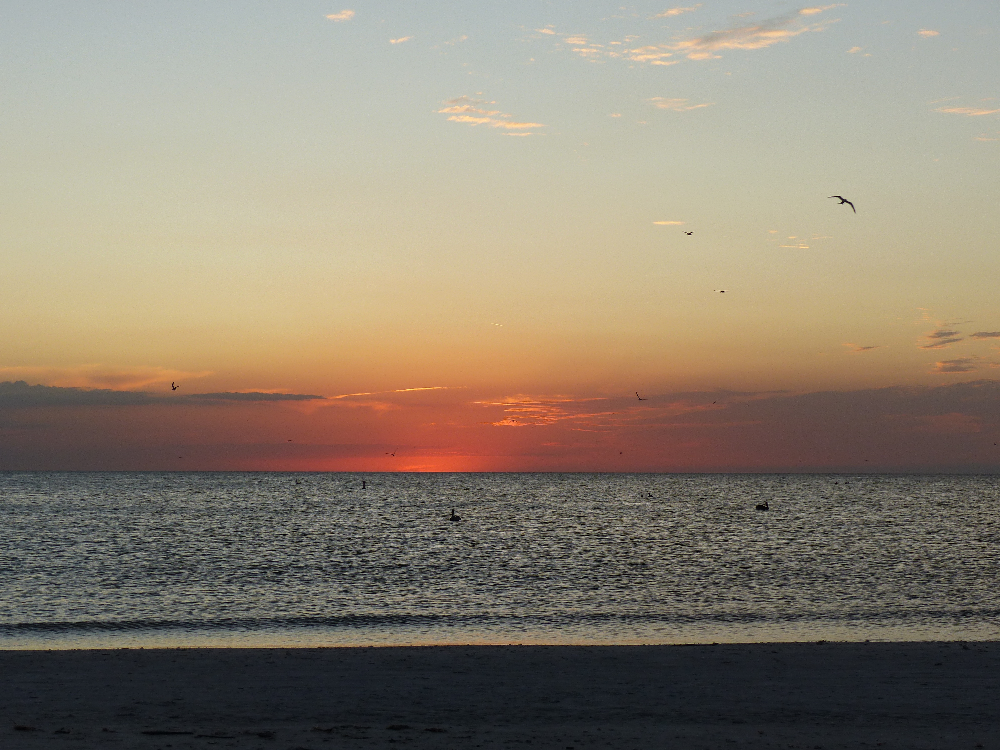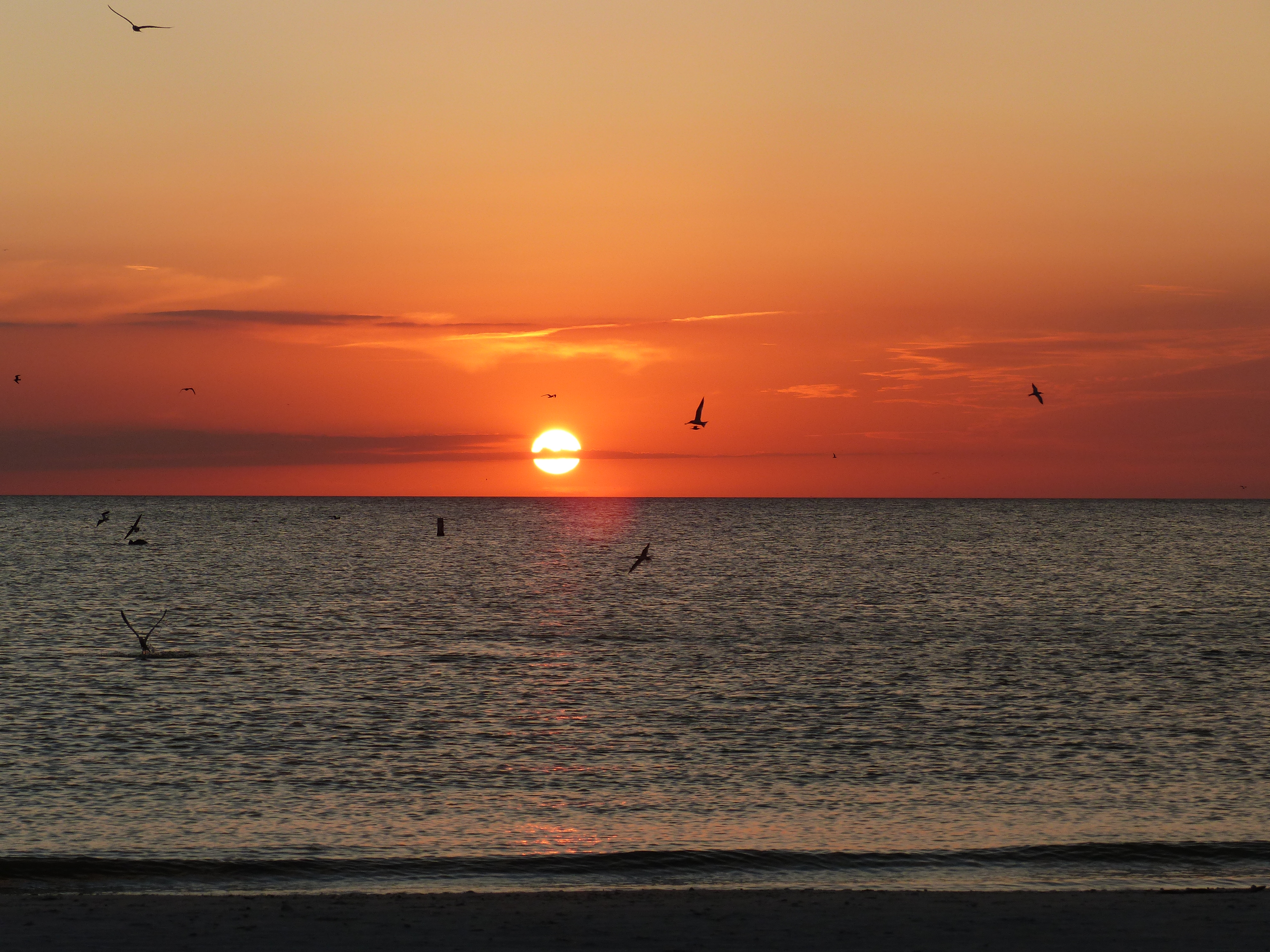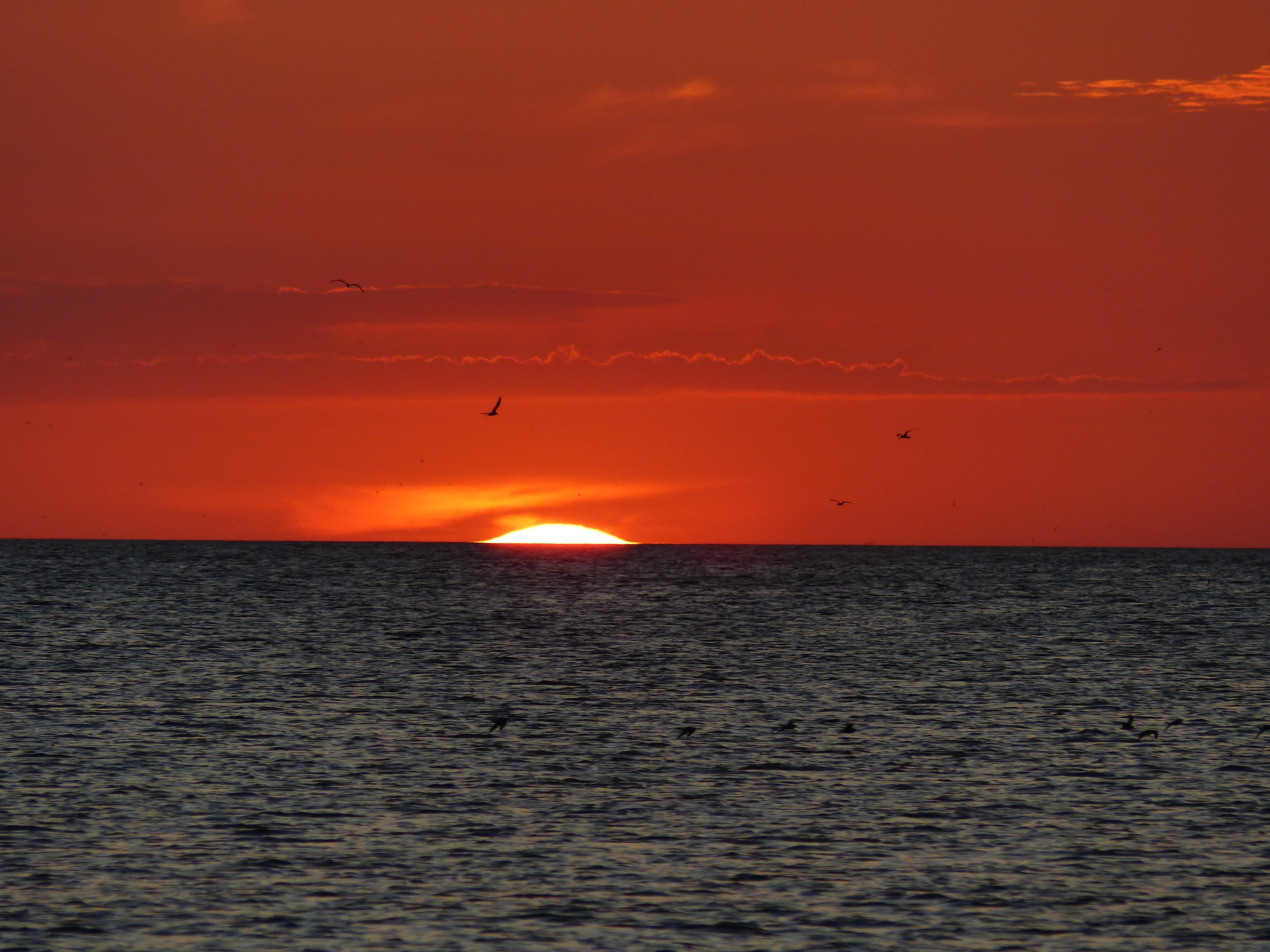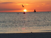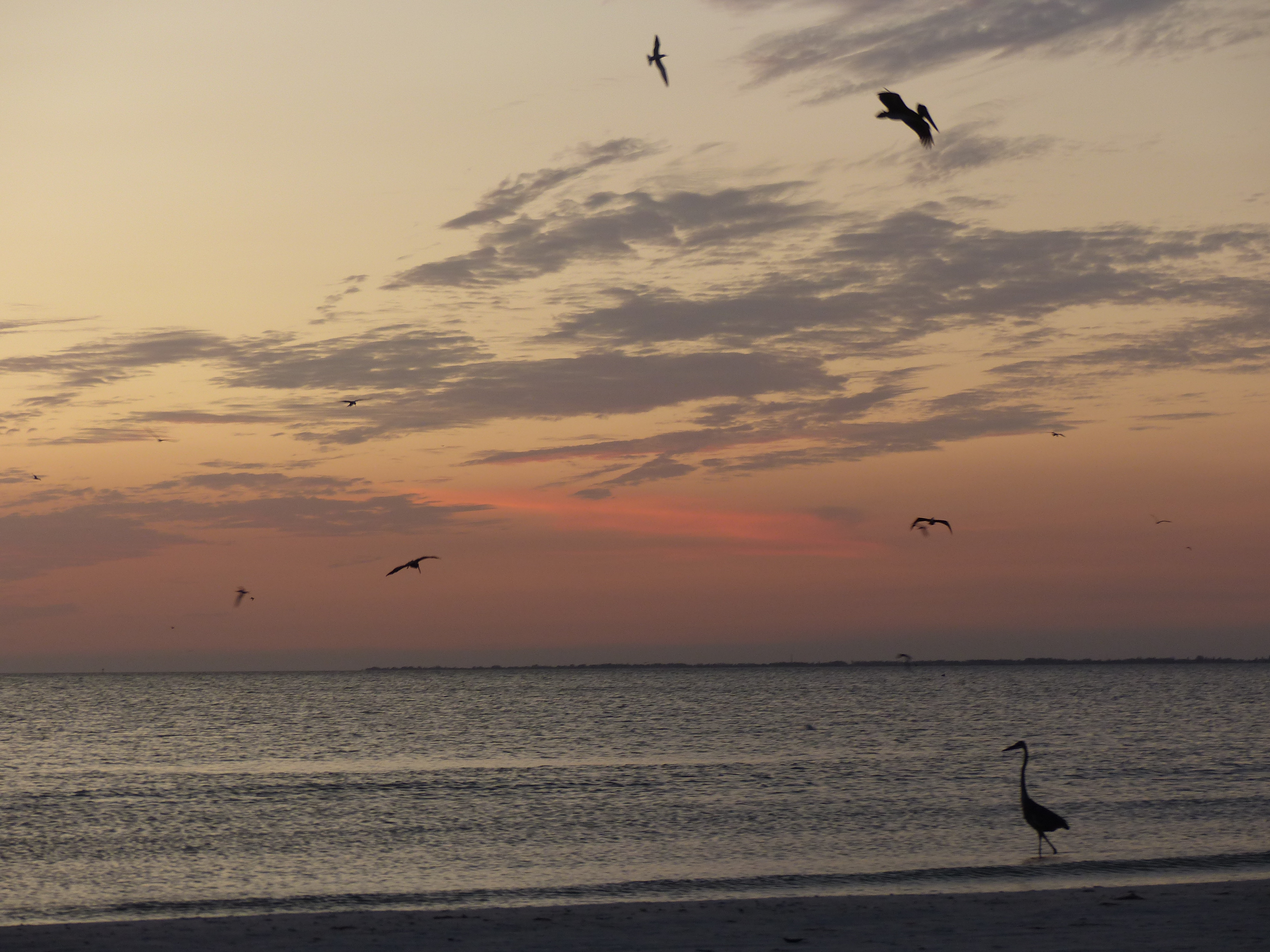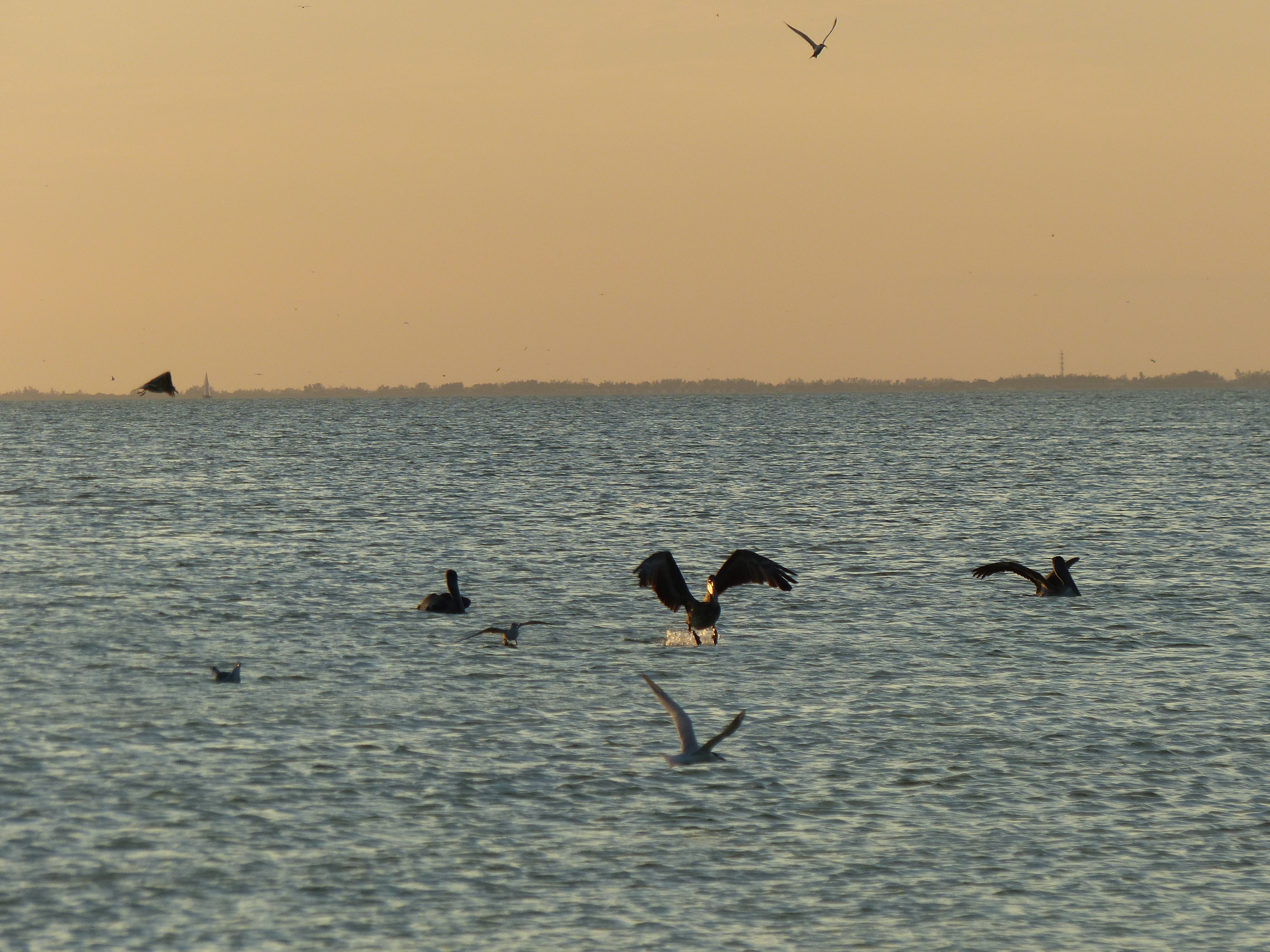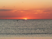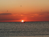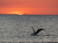 Am Nachmittag konnten wir am Strand, an dem ohnehin immer viele Vögel sind, übermäßig viele Pelikane und Möwen bei der Jagd beobachten. Im Wasser wurde man von ihnen praktisch umringt und man hörte um sich herum das Platschen von den eintauchenden Tieren. Abgeschlossen wurde der Tag mit einem wundervollen Sonnenuntergang.