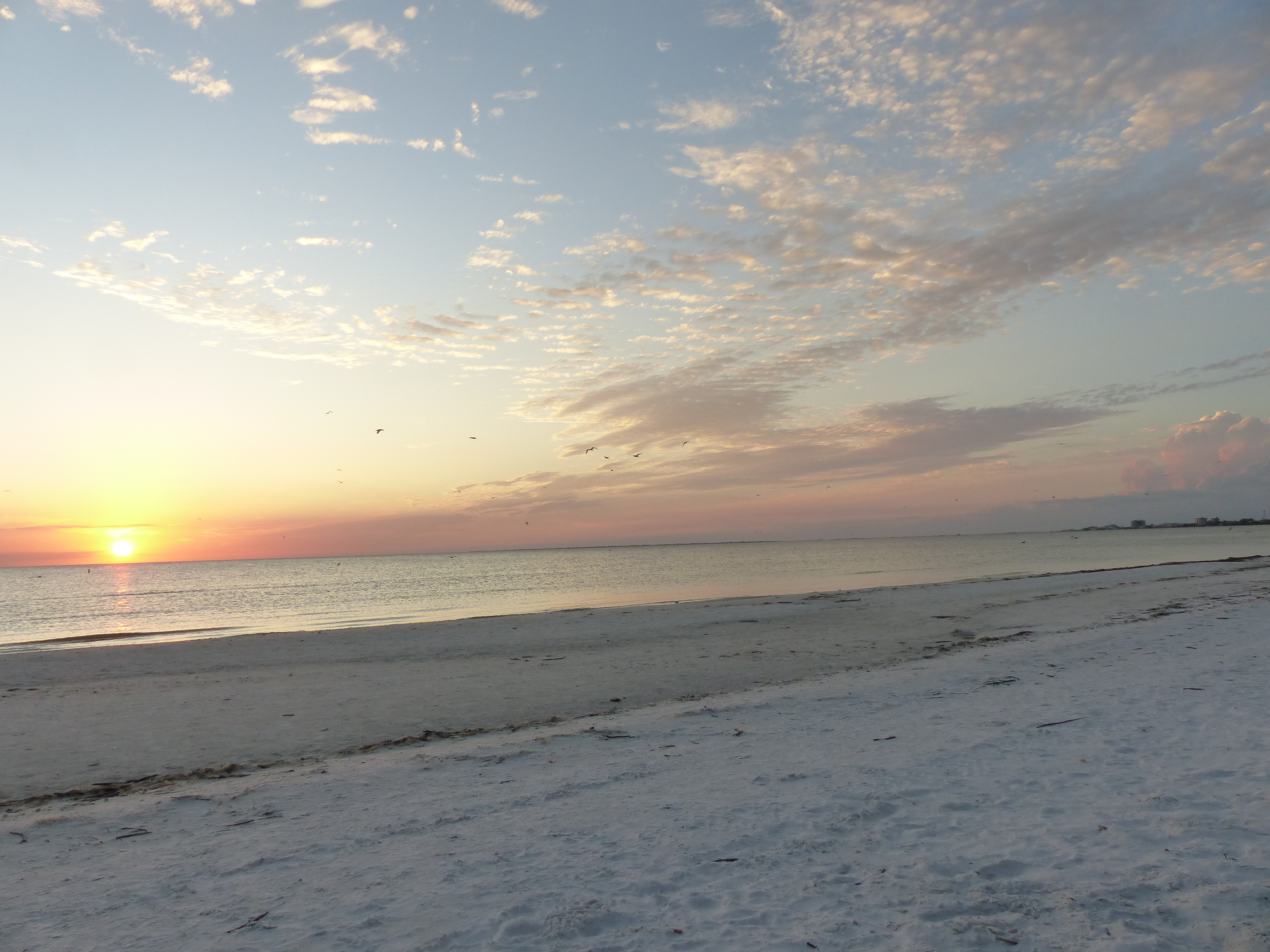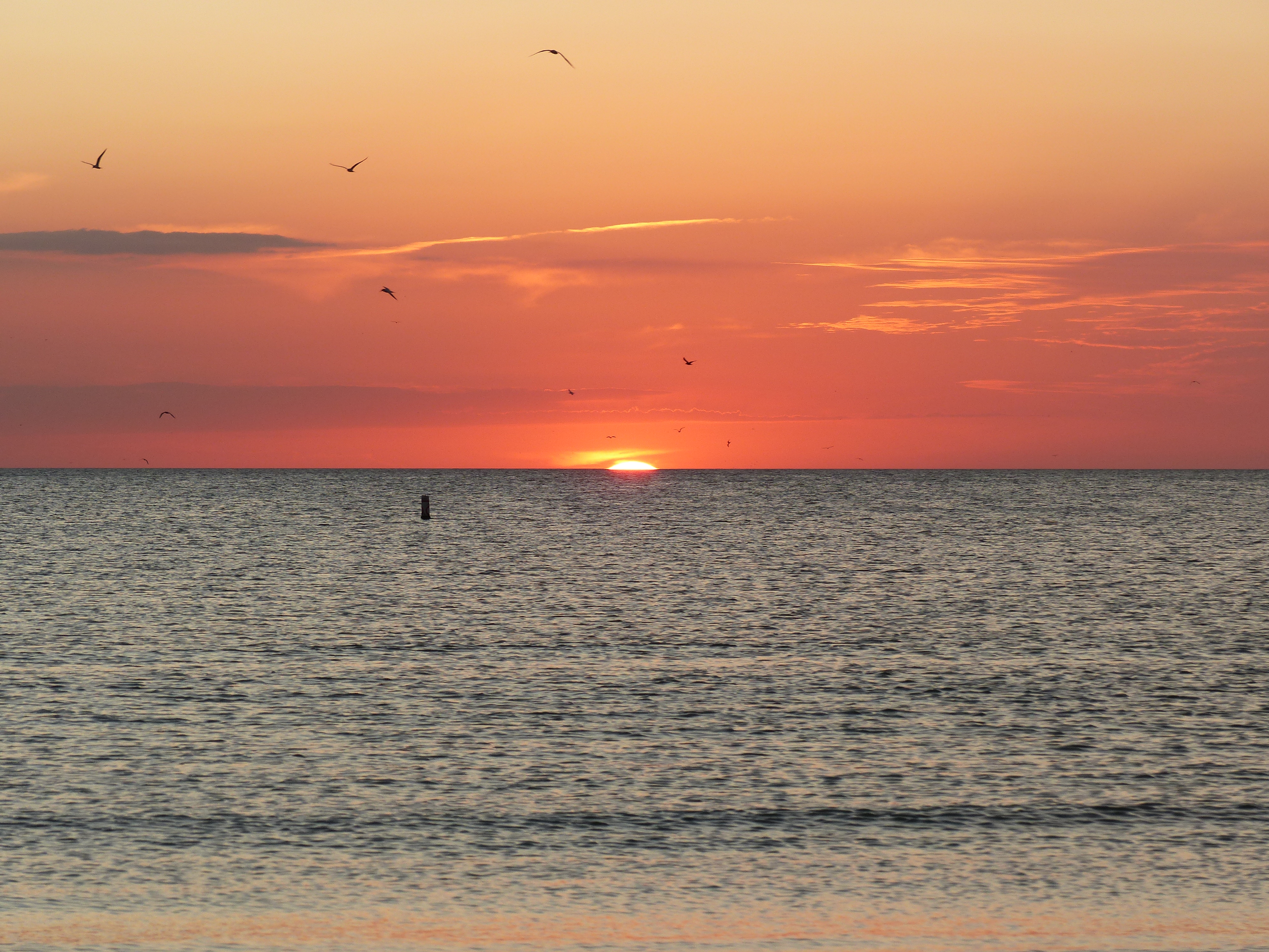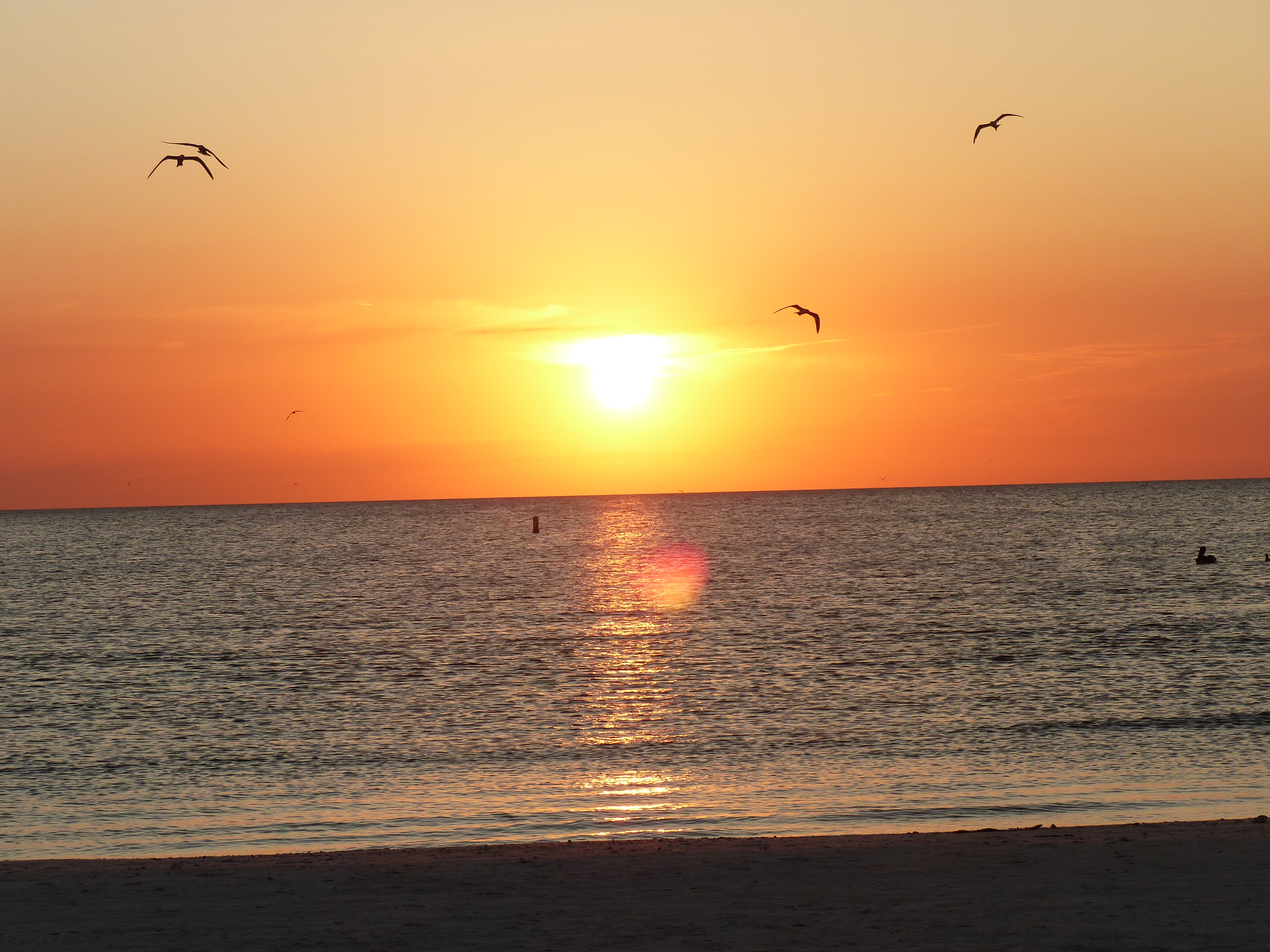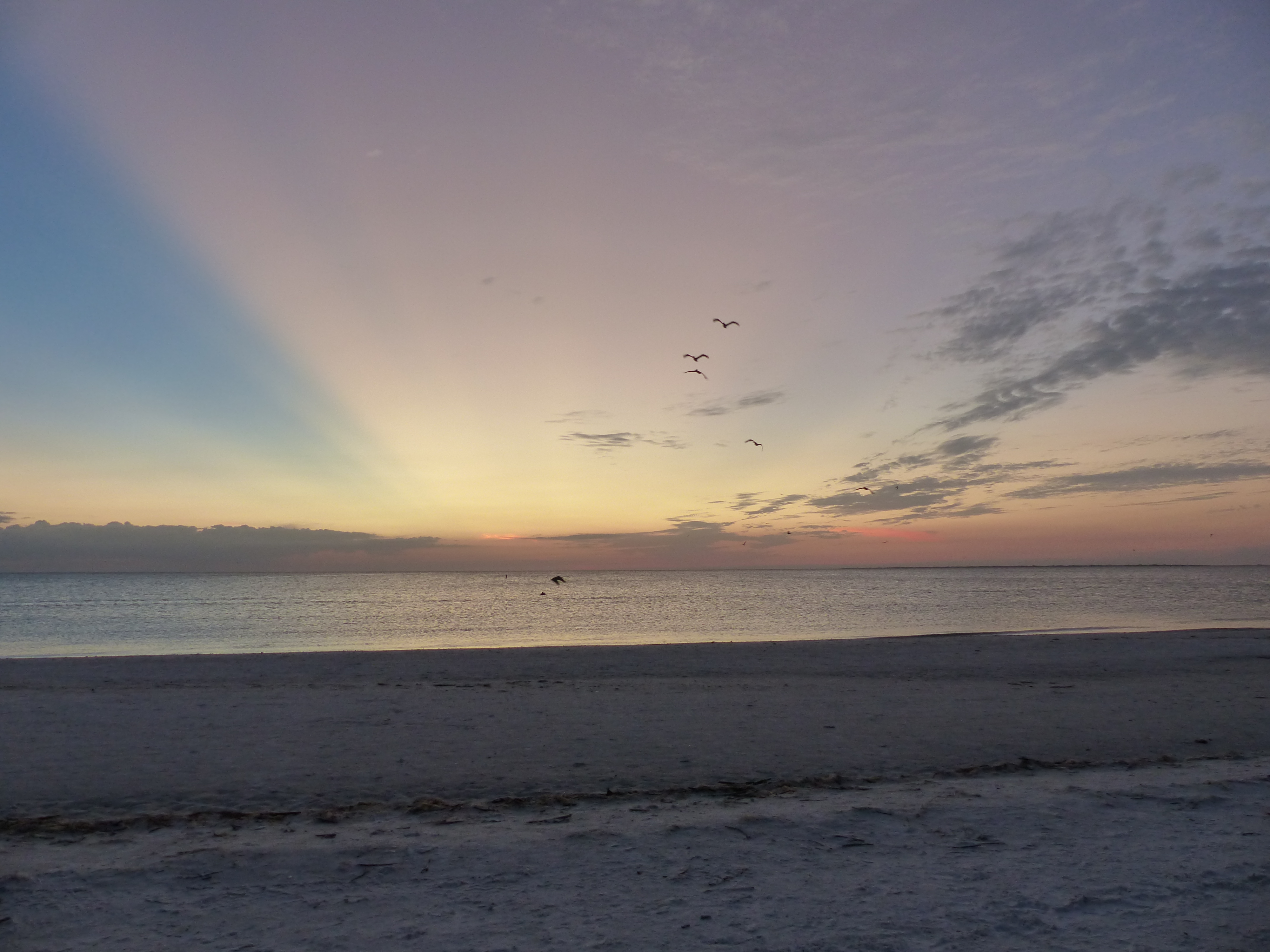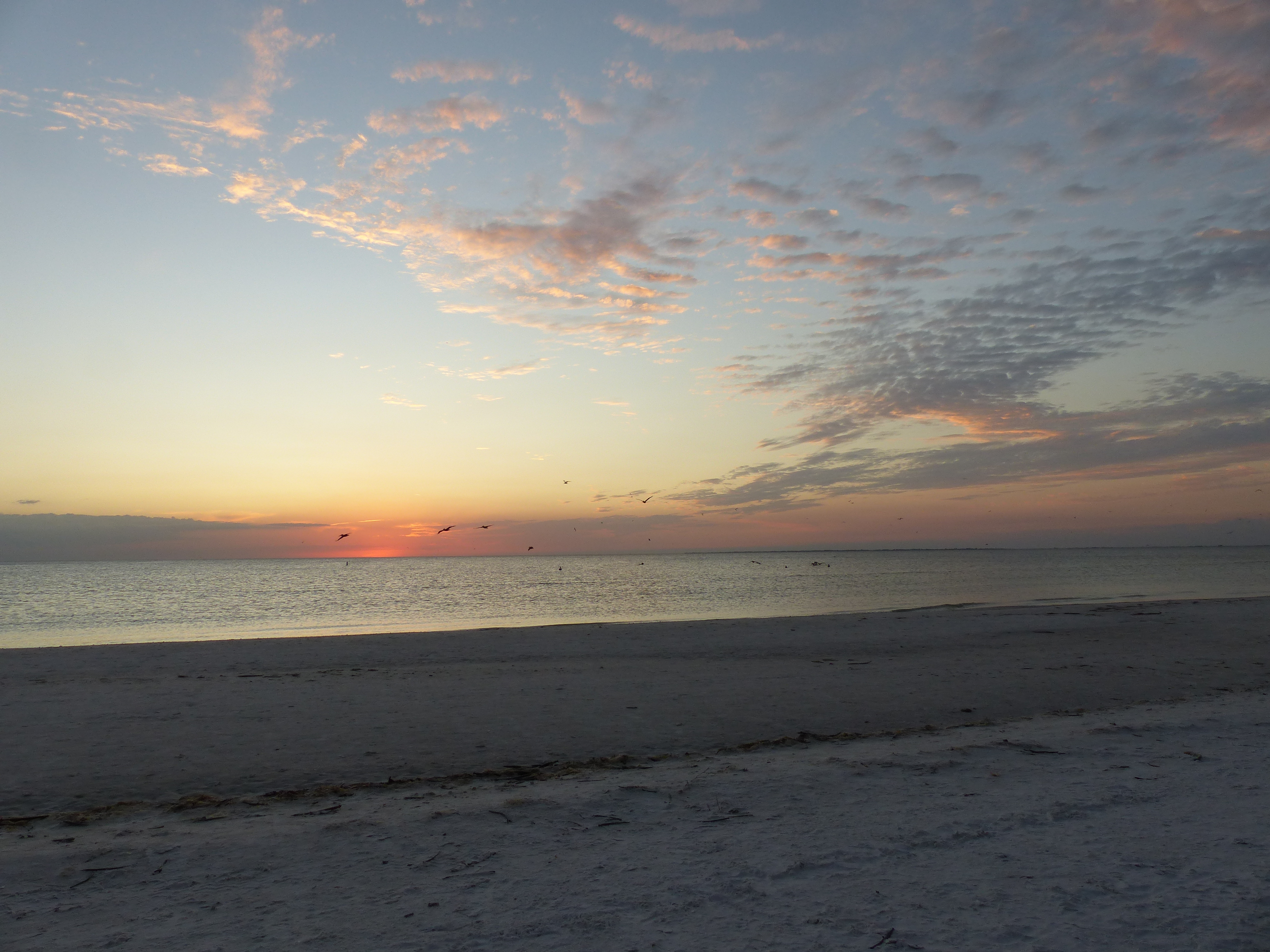 Am Nachmittag konnten wir am Strand, an dem ohnehin immer viele Vögel sind, übermäßig viele Pelikane und Möwen bei der Jagd beobachten. Im Wasser wurde man von ihnen praktisch umringt und man hörte um sich herum das Platschen von den eintauchenden Tieren. Abgeschlossen wurde der Tag mit einem wundervollen Sonnenuntergang.
