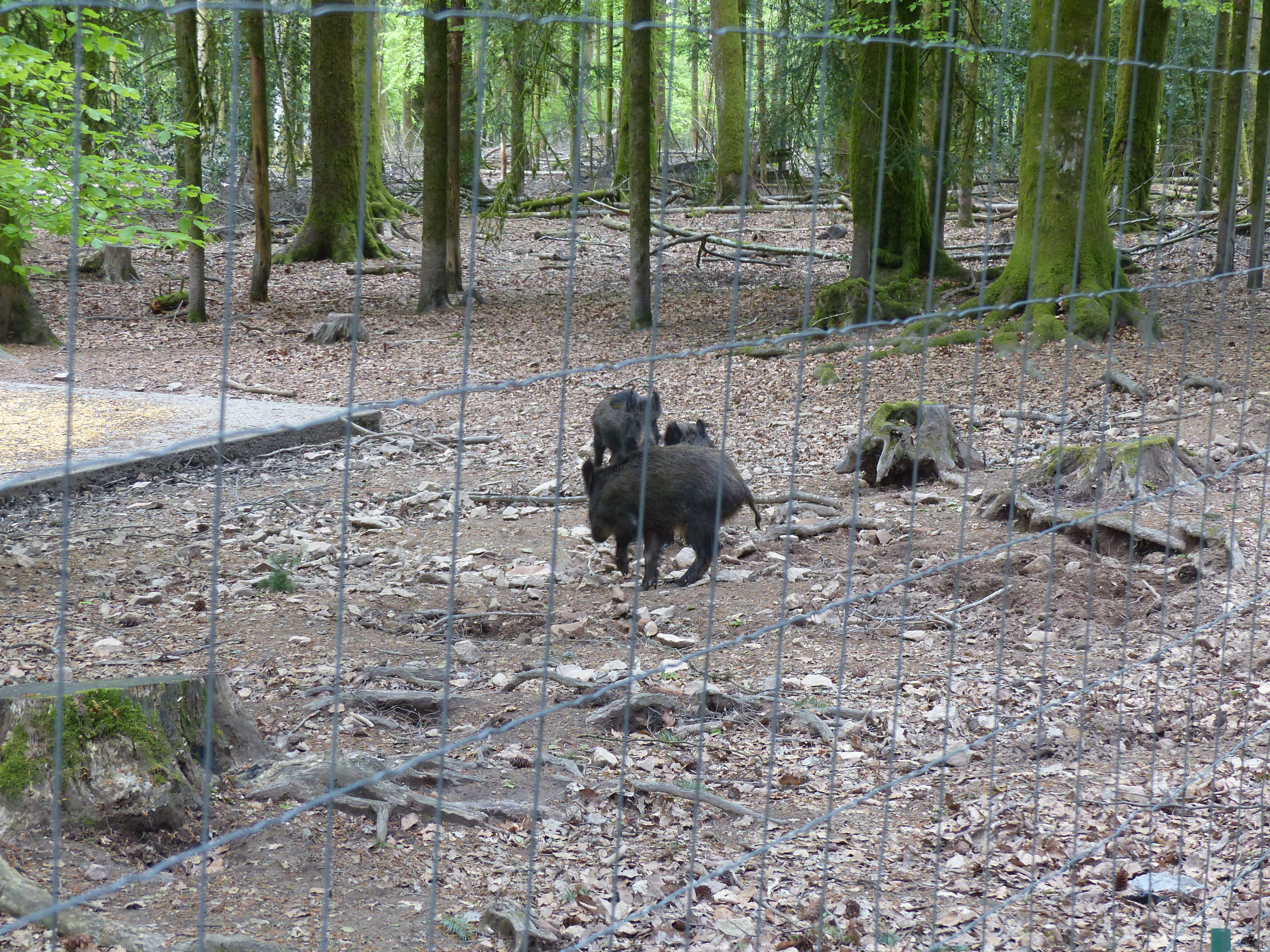 Zu der Zeit der Abfahrt waren es bereits etwas über 10°C und so konnte ich die verbleibenden (harmlosen) Bergfahrten mit akzeptabler Temperatur absolvieren. Hier stand noch die Forstwirtschaft im Vordergrund und bei einer Pause habe ich zufällig an einem Wildschweingehege angehalten.
